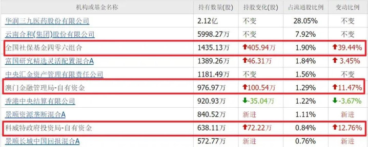 第二家:昆药集团(社保加仓406万股,中央汇金锁仓)