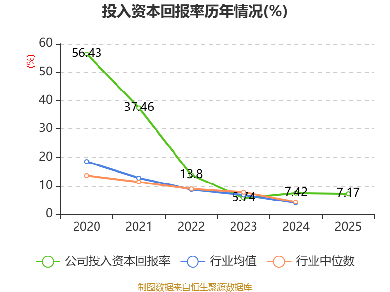 数据显示,2025年公司加权平均净资产收益率为7.66%,较上年同期上升0.07个百分点。公司2025年投入资本回报率为7.17%,较上年同期下降0.25个百分点。