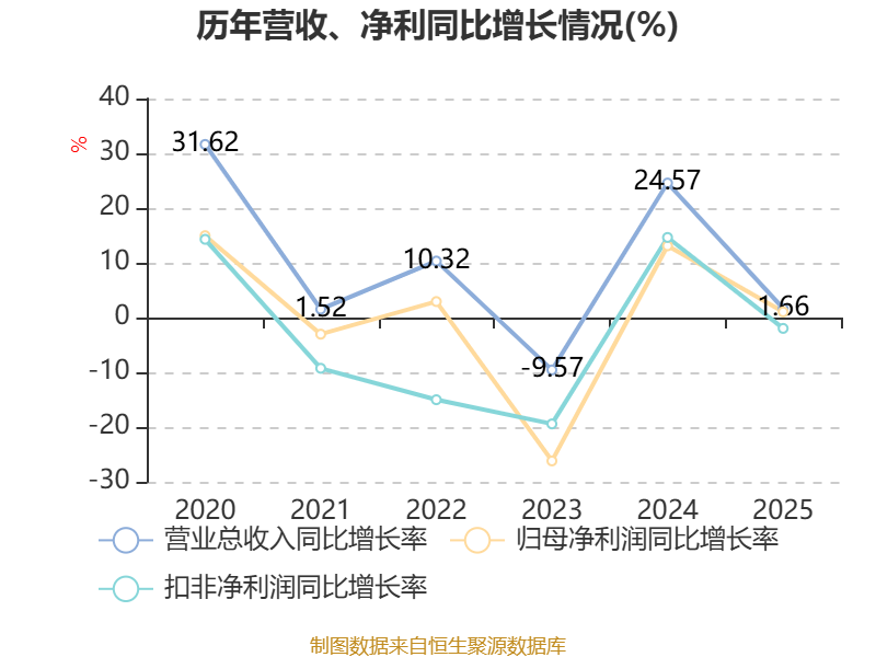 负债重大变化方面,截至2025年末,公司应付票据及应付账款较上年末增加121.58%,占公司总资产比重上升3.05个百分点;租赁负债较上年末增加1348.82%,占公司总资产比重上升0.54个百分点;短期借款较上年末增加86.94%,占公司总资产比重上升0.35个百分点;长期应付款合计较上年末减少32.11%,占公司总资产比重下降0.34个百分点。