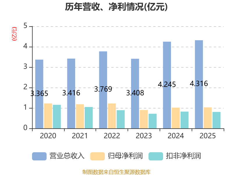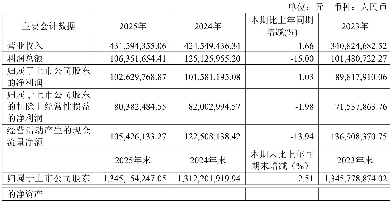 中证智能财讯麦澜德(688273)4月16日披露2025年年度报告。2025年,公司实现营业总收入4.32亿元,同比增长1.66%;归母净利润1.03亿元,同比增长1.03%;扣非净利润8038.25万元,同比下降1.98%;经营活动产生的现金流量净额为1.05亿元,同比下降13.94%;报告期内,麦澜德基本每股收益为1.0492元,加权平均净资产收益率为7.66%。公司2025年度分配预案为:拟向全体股东每10股派现5元(含税)。