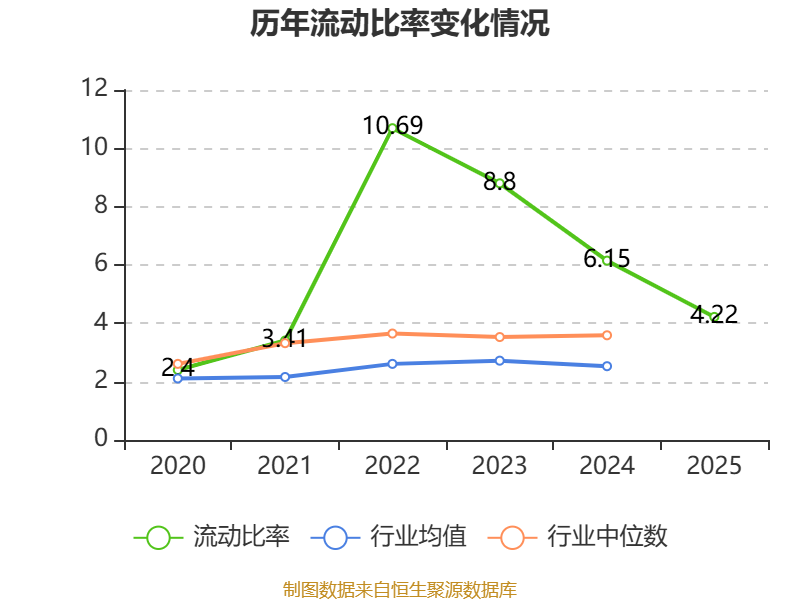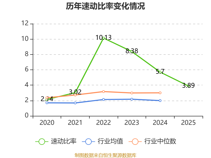 2025年,公司流动比率为4.22,速动比率为3.89。