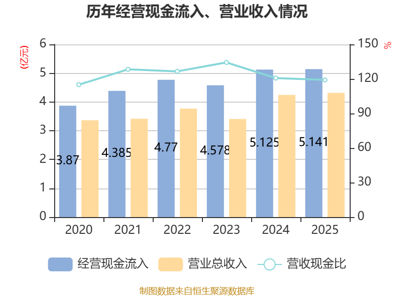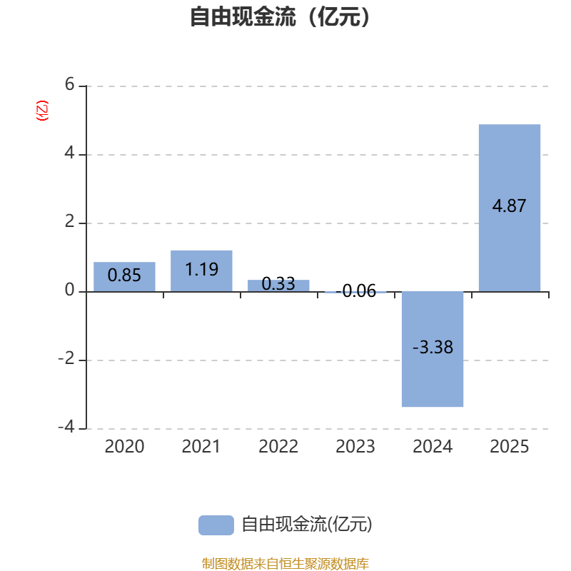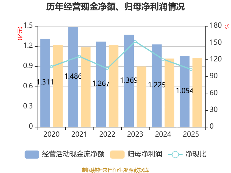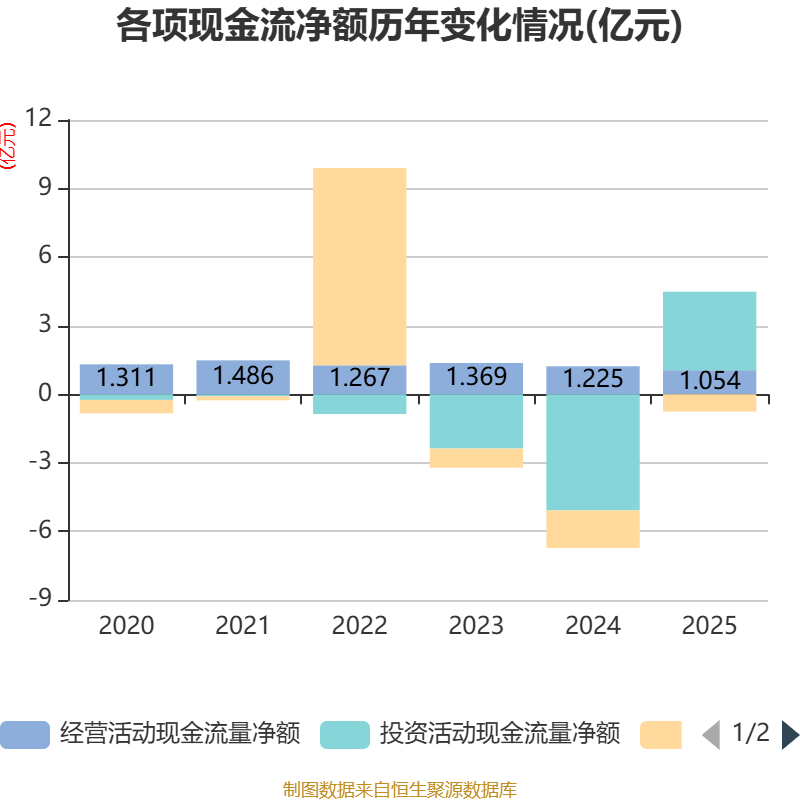 截至2025年,公司经营活动现金流净额为1.05亿元,同比下降13.94%;筹资活动现金流净额-7580.09万元,同比增加8871.92万元;投资活动现金流净额3.43亿元,上年同期为-5.08亿元。