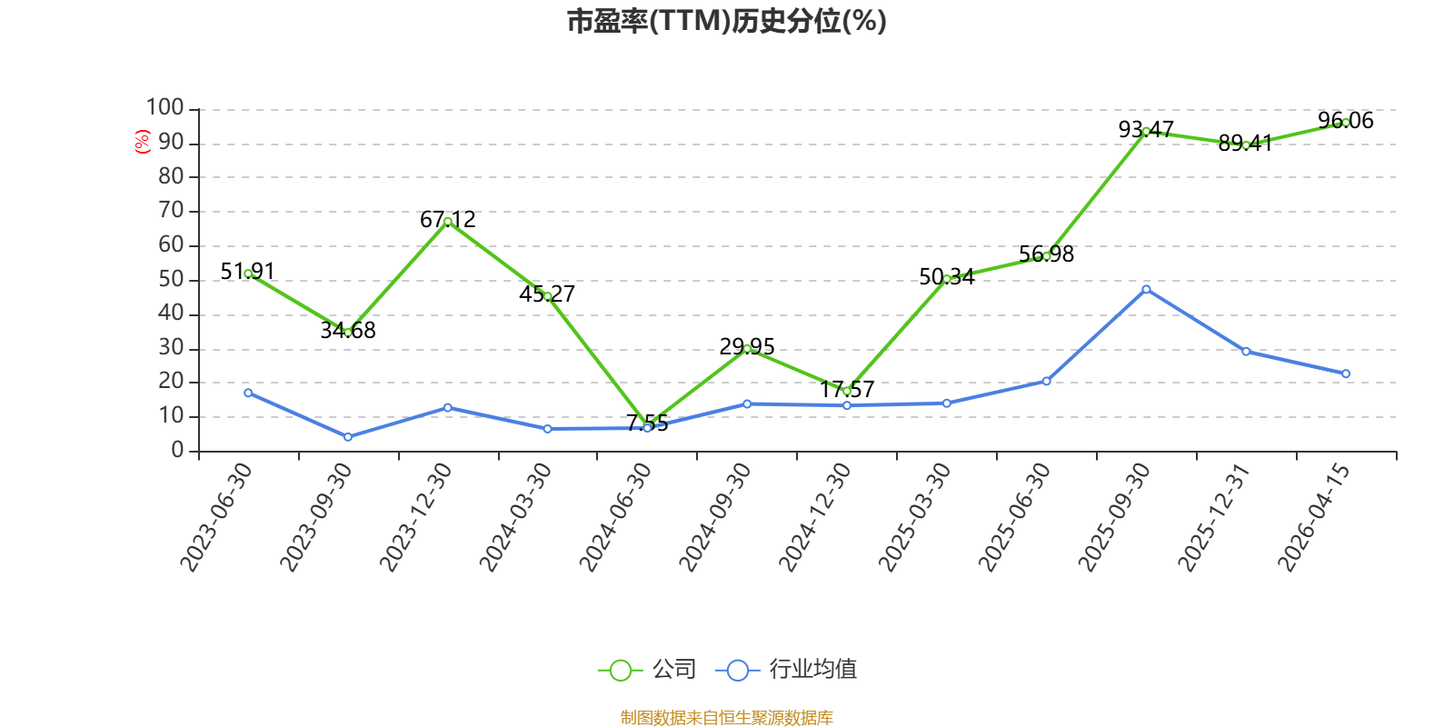 市盈率、市净率为负时,不显示当期分位数,会导致折线图中断。