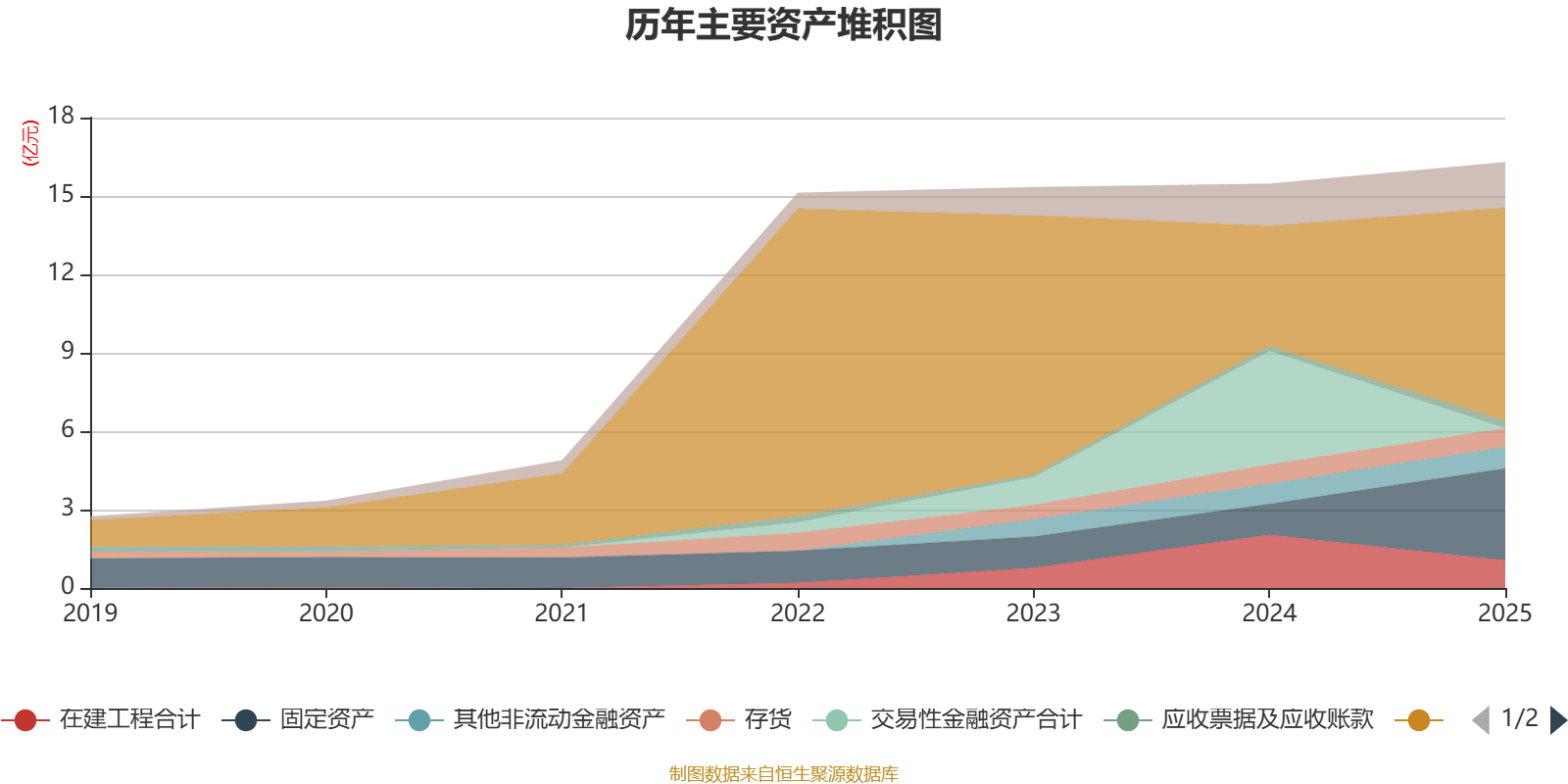 资产重大变化方面,截至2025年末,公司交易性金融资产合计较上年末减少100%,占公司总资产比重下降28.02个百分点;货币资金较上年末增加76.89%,占公司总资产比重上升20.27个百分点;固定资产较上年末增加196.91%,占公司总资产比重上升13.93个百分点;在建工程合计较上年末减少47.84%,占公司总资产比重下降6.63个百分点。