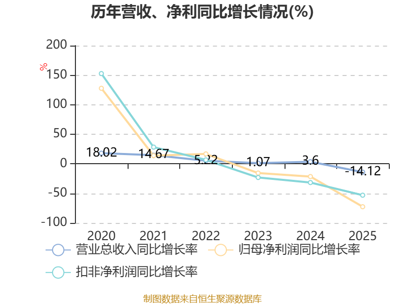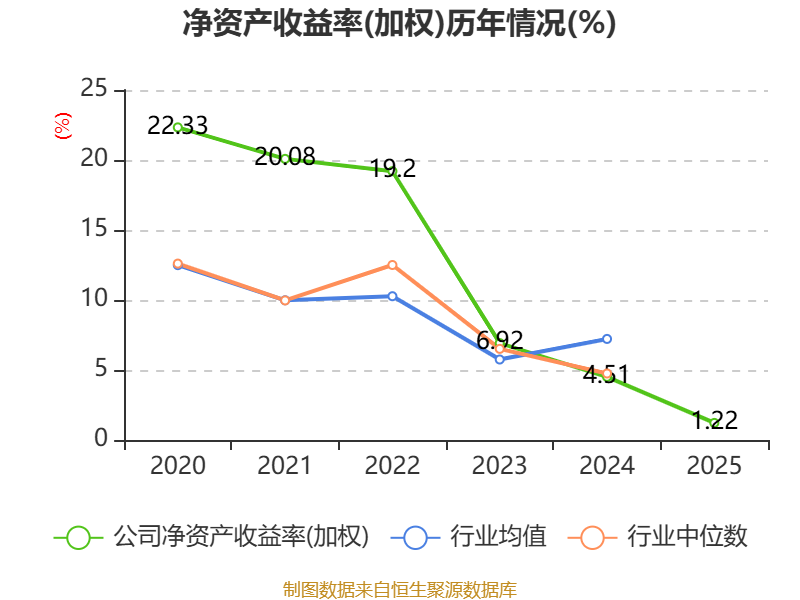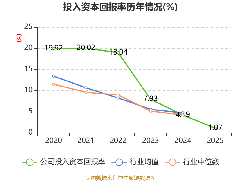 数据显示,2025年公司加权平均净资产收益率为1.22%,较上年同期下降3.29个百分点。公司2025年投入资本回报率为1.07%,较上年同期下降3.12个百分点。