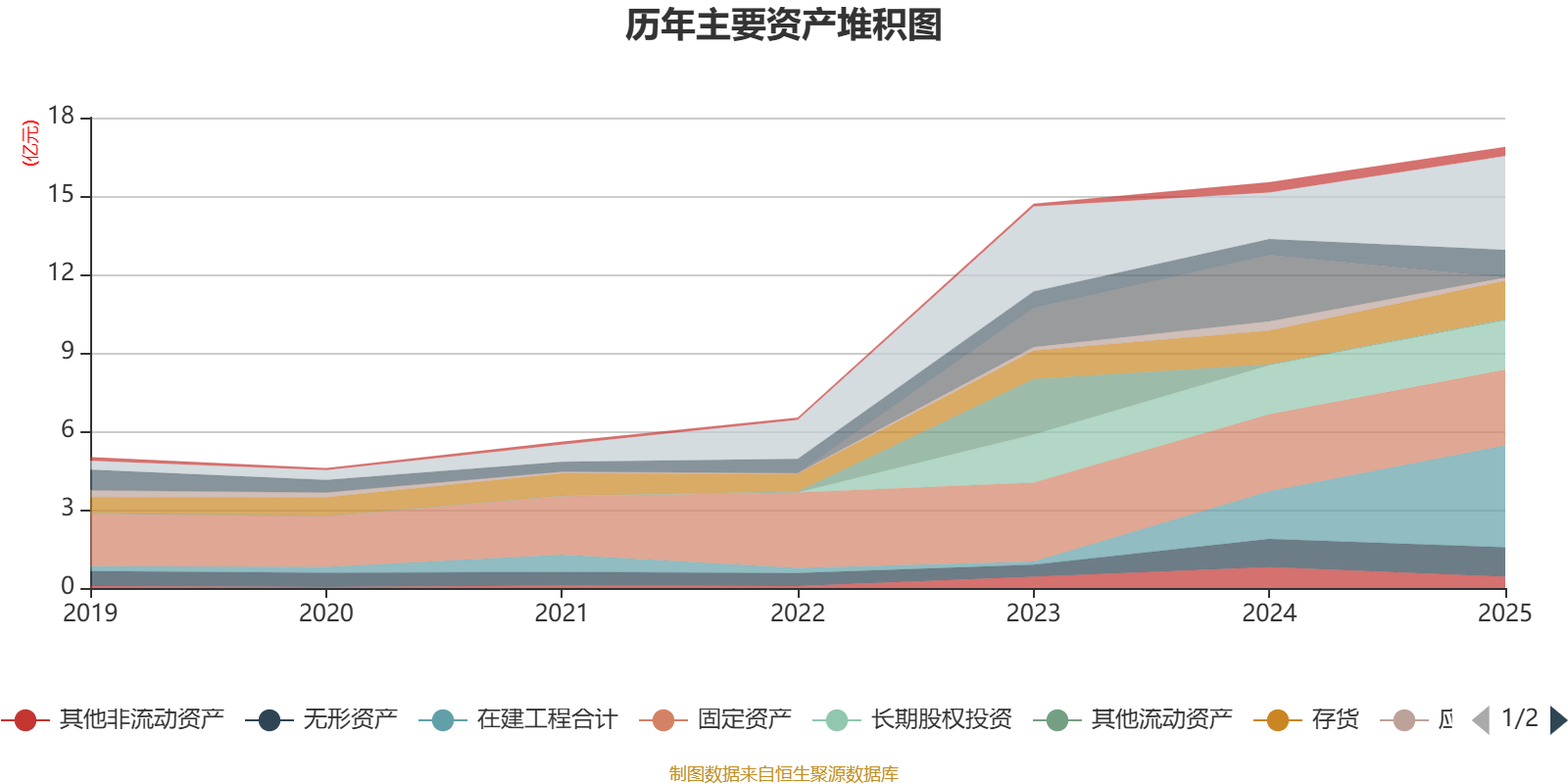 资产重大变化方面,截至2025年末,公司交易性金融资产合计较上年末减少100%,占公司总资产比重下降16.39个百分点;在建工程合计较上年末增加113.03%,占公司总资产比重上升11.32个百分点;货币资金较上年末增加101.58%,占公司总资产比重上升9.8个百分点;其他非流动资产较上年末减少46.52%,占公司总资产比重下降2.62个百分点。