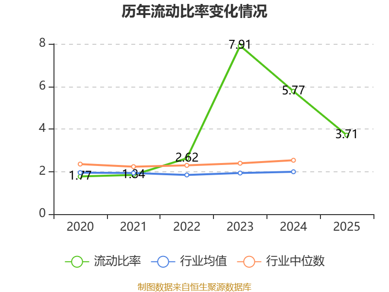 2025年,公司流动比率为3.71,速动比率为2.87。