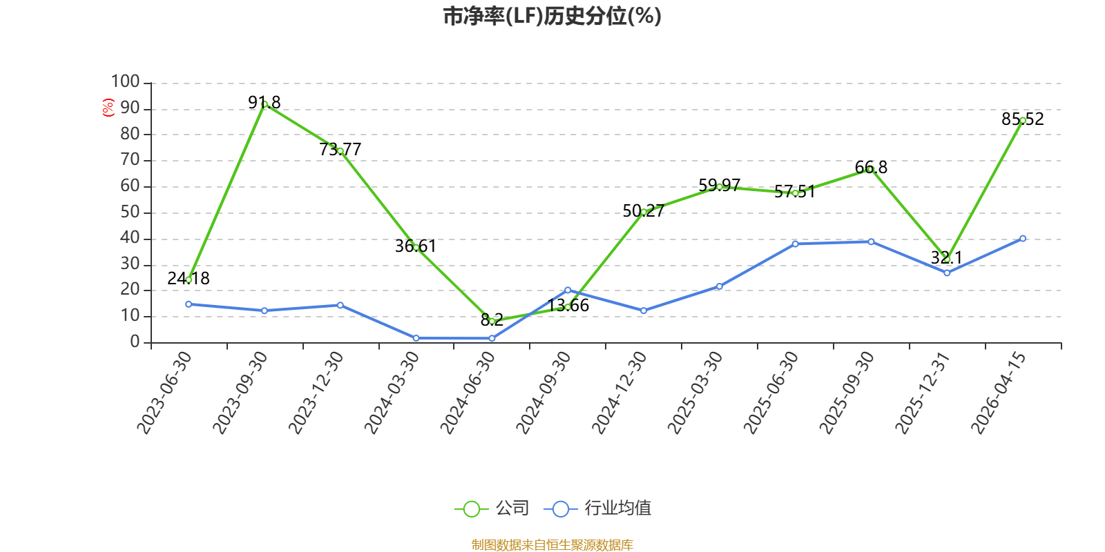 市盈率、市净率为负时,不显示当期分位数,会导致折线图中断。